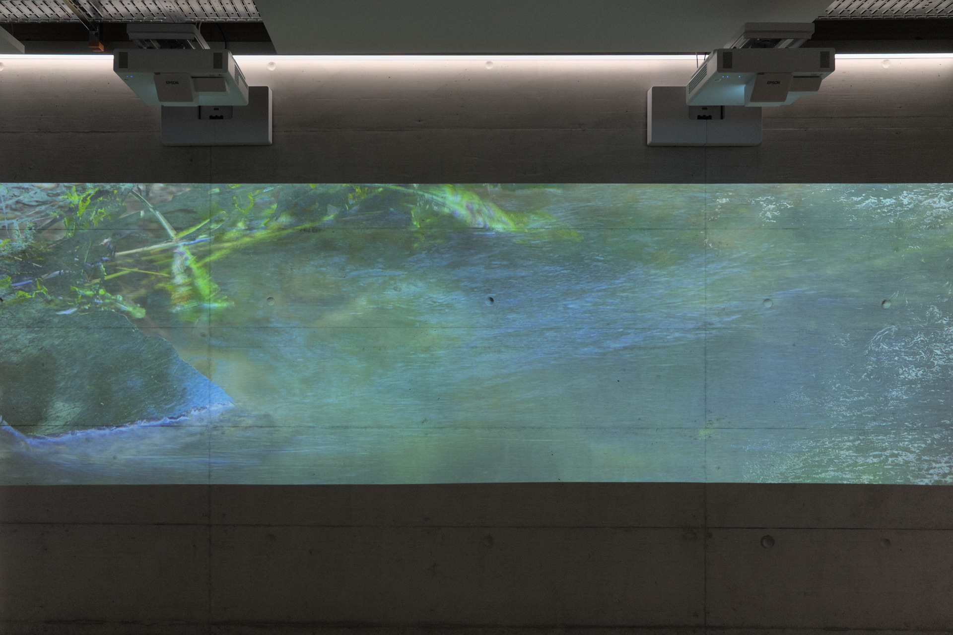 A collaborative work with artist Ursula Damm commissioned by EAWAG Switzerland, Kontinuum is a permanent generative live projection based on live sensor data and camera footage from a small stream in front of a water research institute.